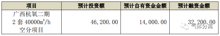 杭氧股份向广西杭氧增资14000万元,用于二期2套40000m³/h空分项目建设,其余资金广西杭氧计划以项目贷款方式融资解决。