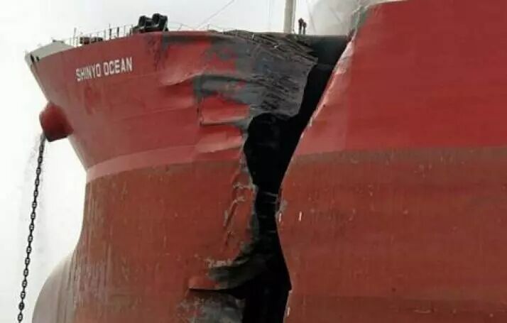 在阿曼湾阿联酋富查伊拉港锚地附近,一艘悬挂马耳他旗的“ASEEM”号液化天然气运输船与一艘悬挂中国香港旗的“SHINYO OCEAN”号超大型原油运输船(VLCC)发生严重碰撞!