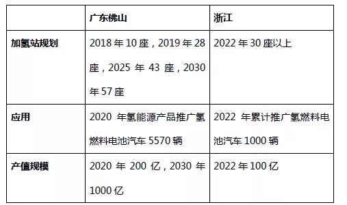 数据来源:《佛山市氢能源产业发展规划(2018—2030年)》、《浙江省培育氢能产业发展的若干意见(征求意见稿)》、时代商学院整理