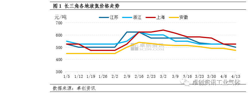 1.氛围平淡,长三角液氮价格震荡下行