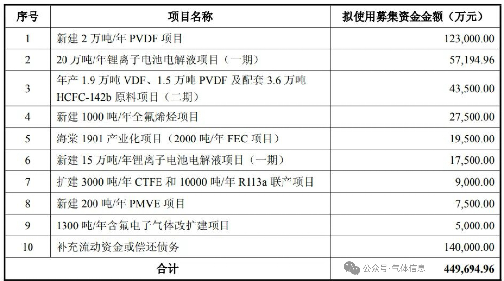 此外,在不改变募集资金用途的前提下,公司对部分募投项目募集资金投资额进行适当调整,调整后“20 万吨/年锂离子电池电解液项目(一期)”拟使用募集资金金额为571,949,583.74 元,下调3,050,416.26 元,拟使用募集资金总额遂调整为 4,496,949,583.74 元。具体明细如下: