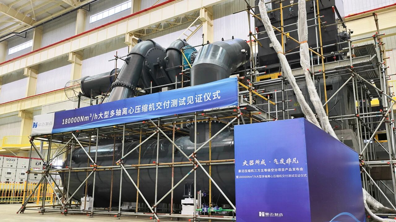 2026年1月8日,在空分气体行业同仁与客户的共同见证下,豪迈压缩机为某知名冶金企业客户量身打造的180000Nm³/h大型多轴离心式压缩机圆满完成测试并正式交付。设备各项参数与性能指标表现优异,均超出客户预期,标志着国产空分装备的研发与制造能力再上新台阶。