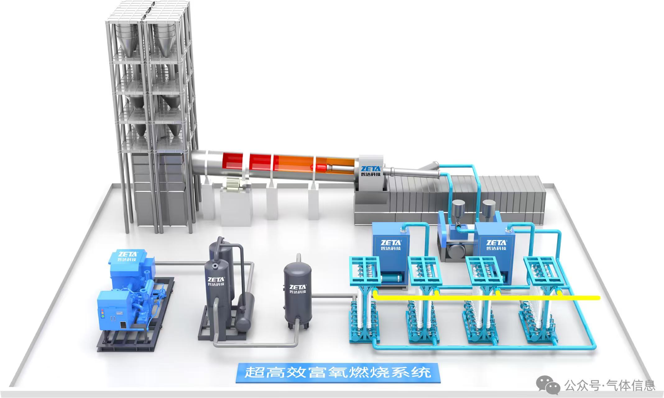 富氧气体通过提升燃烧区氧气浓度,显著提高燃烧效率,降低燃煤消耗,在实现提产增效的同时,达成节能降碳的双重目标。相比传统制氧设备,该技术可实现节能10%至40%。