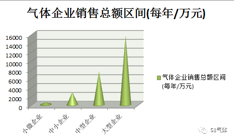 全国气体企业按照年销售额分析,小微企业年销售额不超过600万元,中小企业长期在600~2800万元之间徘徊。中型企业由于区位优势、产品多样性、以及管理效率提升等,年销售额在2800~7500万元之间。若企业经营模式不能有效调整,7500万元将成为气体企业发展的天花板。