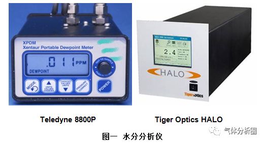 水基本上是所有高纯气体中的有害杂质,一般要求在ppm级的管路系统中,要求管道系统末端不应超过始端含水量的1.1倍。而在ppb级的管路系统,末端含水量变化不得大于10ppb。一般常用的检测仪器有美国Teledyne Analytical Instruments公司的电容式水分分析仪(用于ppm级的管路系统检测)和美国Tiger Optics公司采用光腔衰荡光谱法的痕量水分分析仪(用于ppb级的管路系统检测),部分水分分析仪器信息如表三与图一所示。