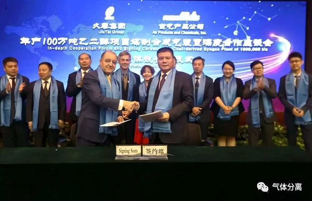 2018年6月22日,空气产品公司与内蒙古久泰新材料公司就年产100万吨乙二醇项目合成气岛建设和运营签署合作协议。