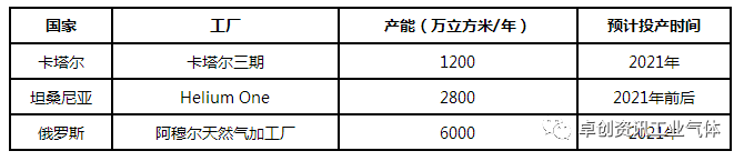 3. 2021年世界氦气产能有望大幅增长