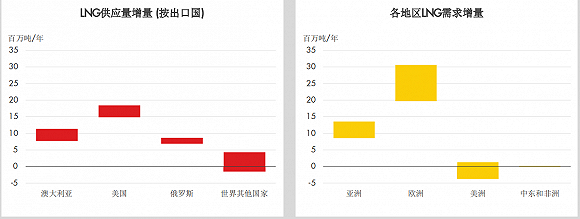 在具体供应方面,澳大利亚LNG出口量在2018年底追上了长期领先的卡塔尔, 预计其2019年出口量还将增加1000万吨。