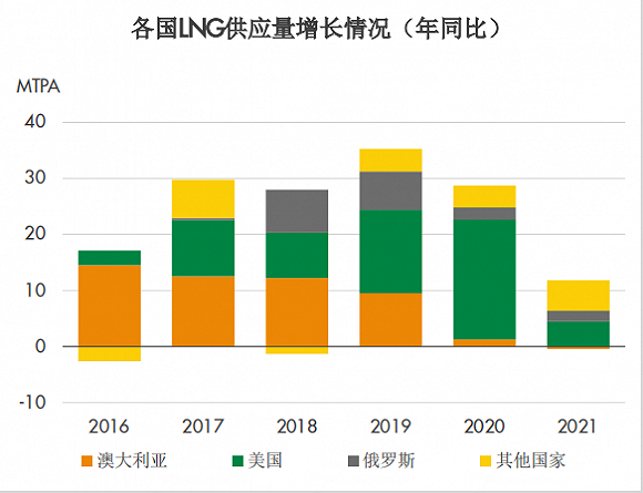 未来三年,美国、俄罗斯将是全球LNG供应量增长最快的国家,也将是主要出口国。