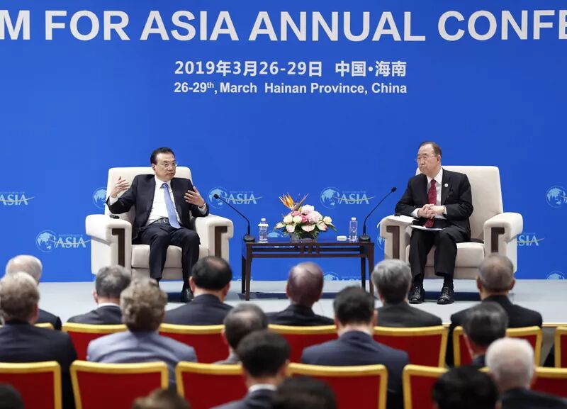 国务院总理李克强3月28日下午在海南博鳌同出席博鳌亚洲论坛2019年年会的工商、金融、媒体、智库代表举行对话会。各国各界知名人士200余人出席。