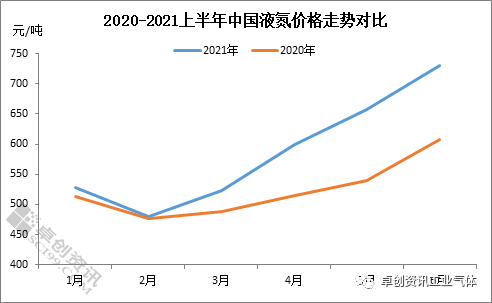 [导语] 2021年上半年,中国液氮市场表现可观,均价较去年同期上涨12.05%。价格出现上涨,主要得益于公共卫生事件控制良好后,经济缓慢恢复,下游钢铁、化工等行业持续升温。