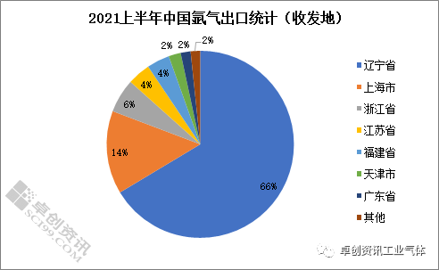 从收发地来看,辽宁地区为主要发货地,出口量达2.55万吨,占比总量66%;其次是上海市出口量达5520.6吨,占比总量14%,排在第二位;浙江省出口量在2253.5吨,占比稳在6%;此外,江苏、福建、天津、广东等地亦有部分出口。