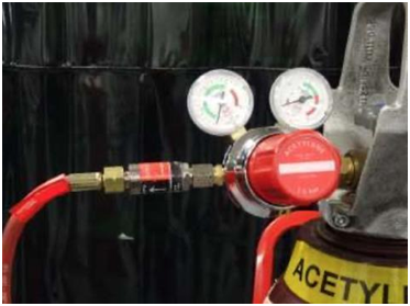 使用合适的调节阀的另一个原因是,乙炔可以在某些条件下分解,特别是在焊接或切割设备或暴露在高温下时发生闪回。乙炔调节阀比其他大多数调节阀都强,它的设计原理是能够承受乙炔的分解。