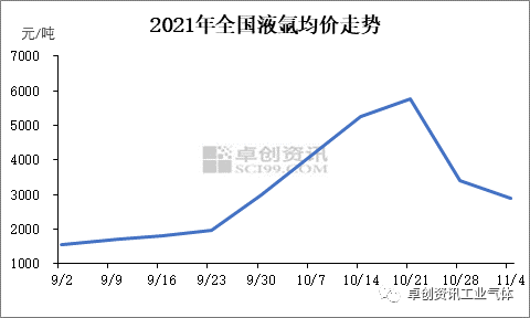 [导语] 因高价抑制需求,10月中旬开始液氩价格自高位跌落,仅一周时间跌幅达42%。然进入11月份市场再现转机,供应面支撑再现,中东部局部地区现反弹态势。