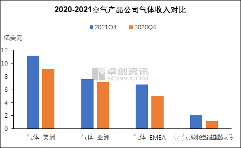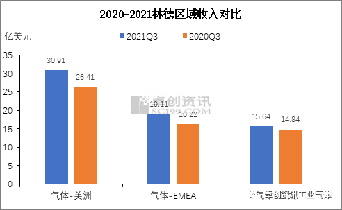 三季度受大宗商品价格上涨及全球市场持续复苏支撑,美洲、欧洲、亚太、中东等地区工业气体均显尚可,三大外资工业气体公司在各区域的收入均同比有所增长,且对后市充满了信心。