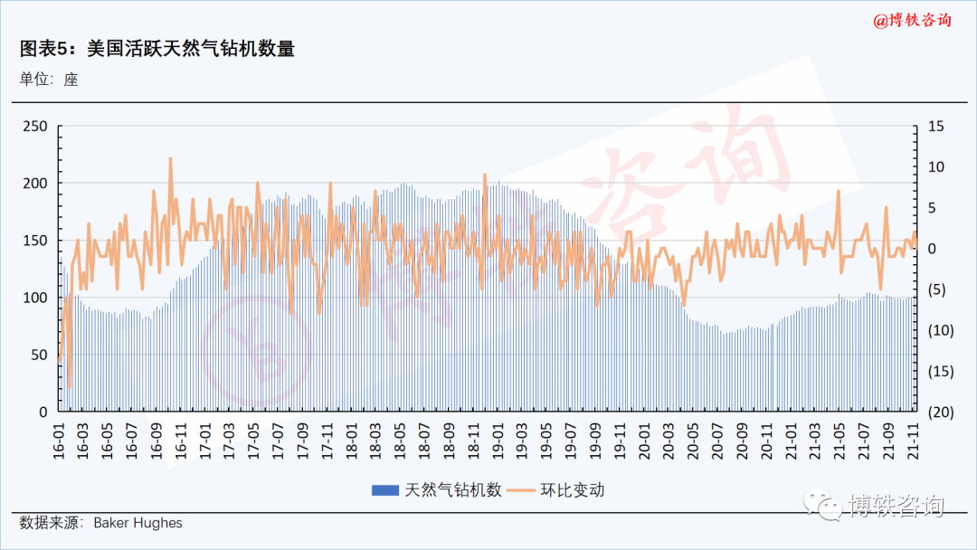 截至本周五(11月19日),美国活跃天然气钻机数量为102座,与上周五(11月12日)持平。