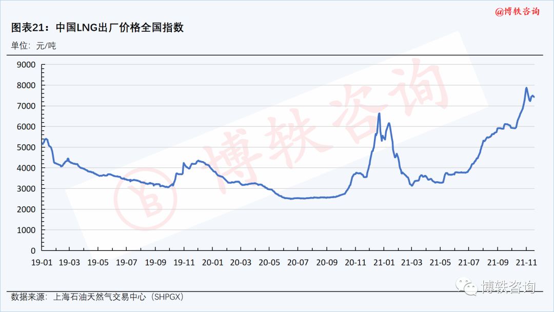 国产气方面,由于近期LNG价格上涨过快,下游接获乏力,上游液厂出货依旧不畅,随着液位的增加,包括河北、内蒙古、山西和陕西等在内的多家液厂集体降价,降幅达100-300元/吨,部分液厂已跌破成本线。考虑到成本支撑作用,上游挺价心理强烈,降幅仍旧有限。