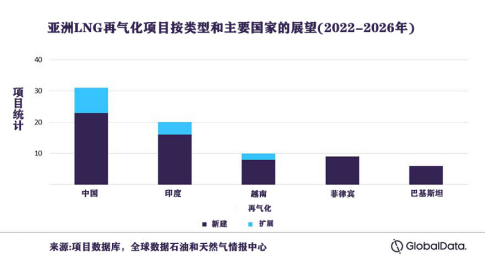 从2022年到2026年,亚洲将主导全球液化天然气再气化项目的启动。全球数据(GlobalData)称,到2026年,印度预计将成为推动亚洲液化天然气再气化项目数量的主要国家之一,约占项目开工数量的21%。