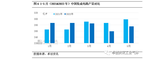 因液氮在电子行业中的应用较为广泛,下面我们通过集成电路产量变化来看下上半年电子行业的发展。据卓创资讯数据监测,2022年1-5月中国集成电路产量达到1392亿块,较2021年同期减少0.98%。从分月数据可以看出,1-2月同期对比均有增加,市场表现尚可。自3月份开始,受多地管控影响,上下游开工不足,抑制集成电路开工水平,2022年3-5月集成电路产量较去年同期减少6.52%。2022年上半年电子行业对液氮市场需求较去年有所减弱。