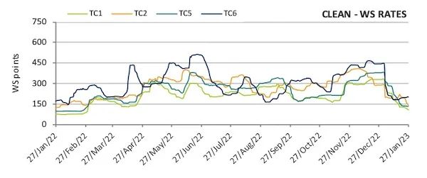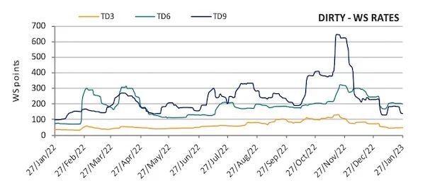 船舶经纪商Intermodal在最新周报中表示:“在LNG现货价格自12月下旬走下坡路以来,LNG运输船期租价格也从坚挺位置小幅回撤。尽管需求前景乐观,船东仍需要确定的数字,尤其是对于2023年下半年的需求。”