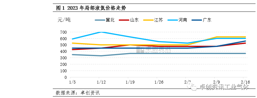 【导语】进入2月份,局部地区利好因素显现,液氮市场氛围好转,价格陆续上涨。短线来看,液氮市场氛围向好,部分区域价格或仍存上行空间。