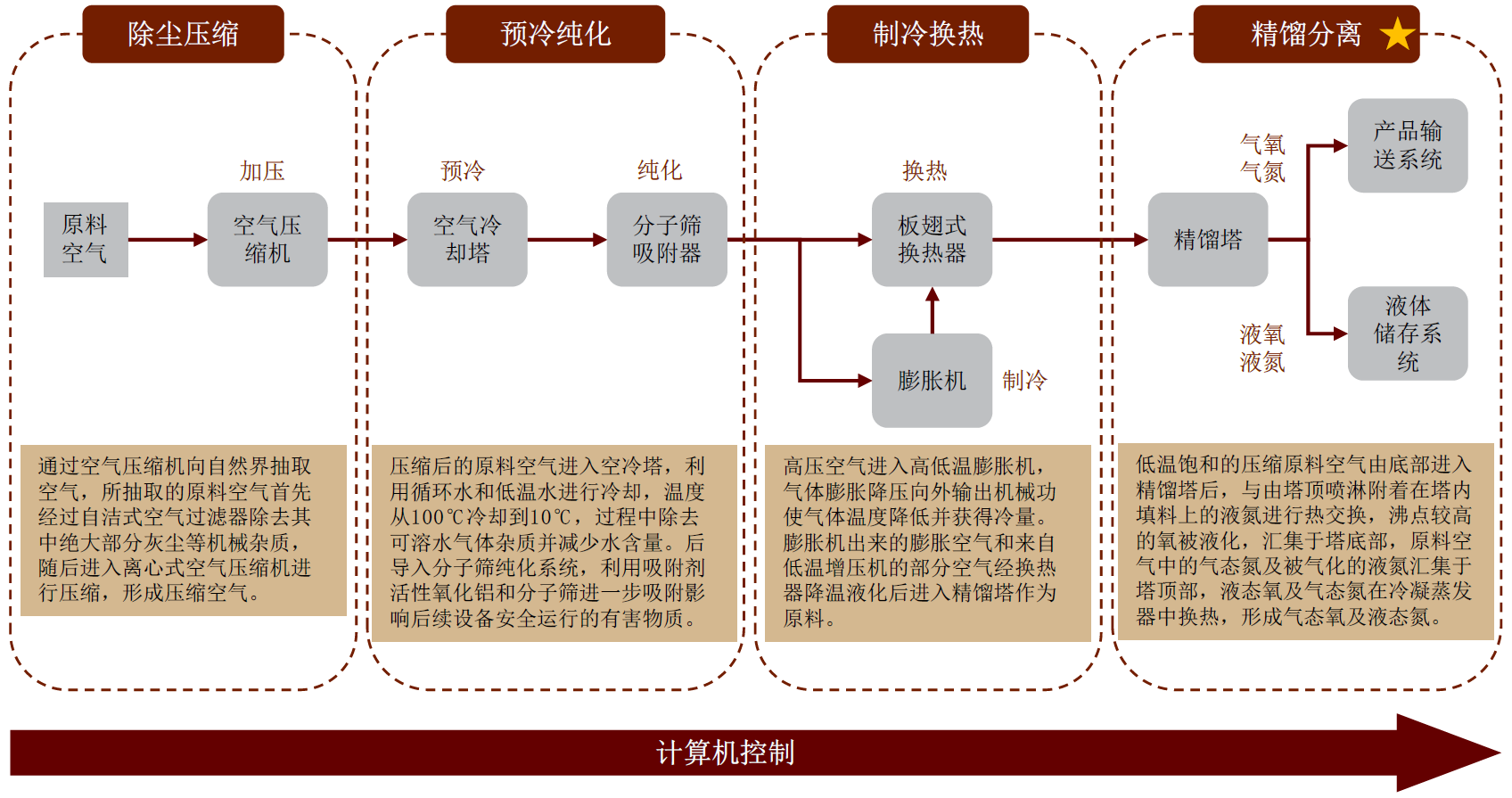 技术方向:工业气体的核心生产设备为空气分离设备,主要包含动设备和静设备。空分设备之间环环相扣,其稳定可靠运行是正常生产的前提。