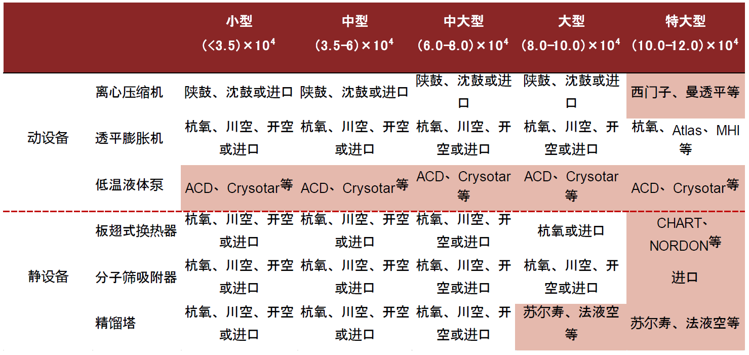 核心设备:主要依托于空分设备,大型化为主要发展方向