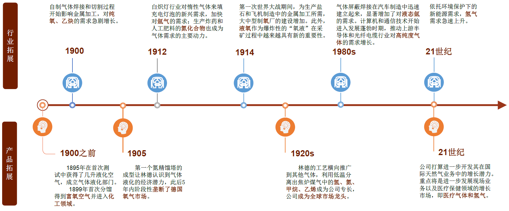 图表14:林德公司始终紧跟下游行业变革,不断拓展业务范围