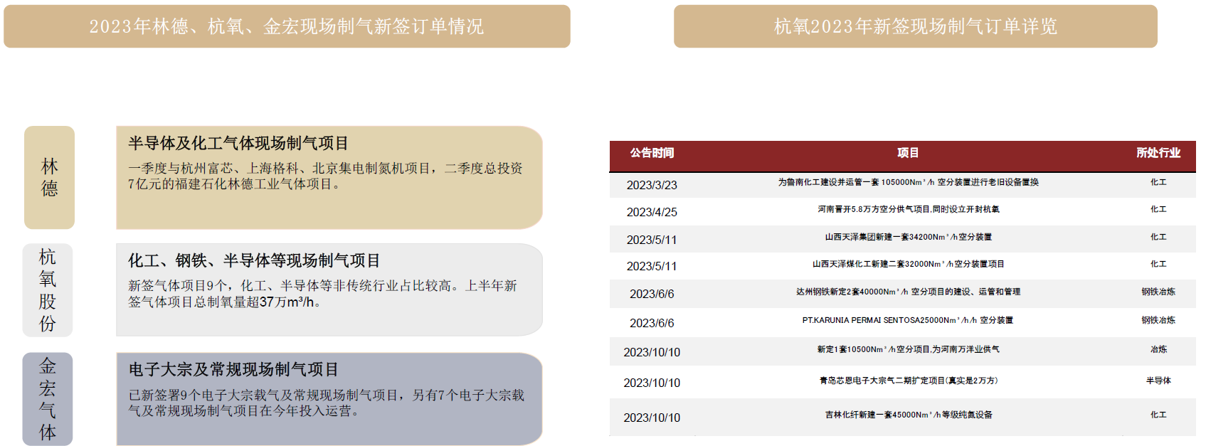 图表24:2023年林德、杭氧、金宏现场制气订单情况