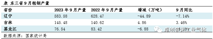 从国家统计局数据来看,东三省9月粗钢产量共805.6万吨,同比减少46.91万吨,同比下降4.24%,仅吉林地区9月粗钢产量略有增加,仅4.86万吨,液氧需求释放增量不明显。粗钢产量下滑对于液氧需求支撑减弱,市场表现偏弱势。
