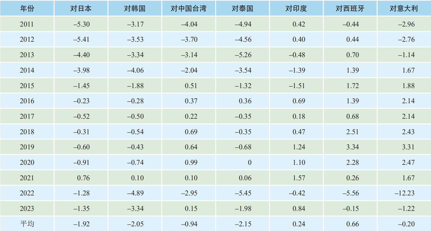 一是从2011—2023年价格水平来看,韩国、日本的平均进口价格最高(其中有7年为韩国最高、5年为日本最高),中国台湾的平均进口价格居中,中国大陆的平均进口价格最低(其中有6年为中国大陆最低、6年为中国台湾最低)。在东北亚区域内,可以认为日本、韩国对中国台湾和中国大陆存在溢价。