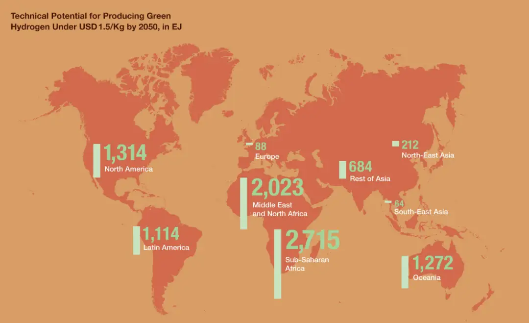 埃及834.5亿美元,阿曼554.1亿美元,摩洛哥168.5亿美元、沙特阿拉伯130亿美元、阿联酋120.8亿美元……这些数字不是别的,是中东北非五国要在新能源制备绿氢领域的初步投资——仅这五国,就有1800多亿美元。以今天的汇率计算,折合人民币1.3万亿!中东具有成为未来绿色氢出口中心的独特地位。它不仅受益于丰富的资源来大规模生产绿氢,而且还具有向西欧和东北亚主要需求中心出口氢的优越条件。