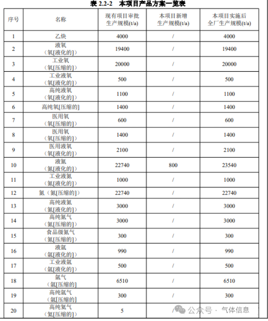 项目利用自有厂房9108.93平方米,采用氢气、甲烷、氩气、氮气、空气等原辅材料,经气体混合、增压、充装、提纯精馏、空气净化、液化分馏、液氮进槽、管道输送等技术或工艺,购置混合气充装排组、氮气压缩机、冷冻机、分馏塔、自洁式空气过滤器、离心式空气压缩机、纯化系统、低温液氮泵、玻璃钢冷却塔、卧式单级单吸离心水泵、氮气输送管道、低温液体储槽、汽化器等国产设备。