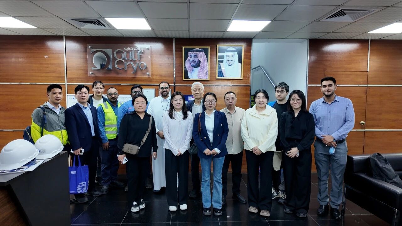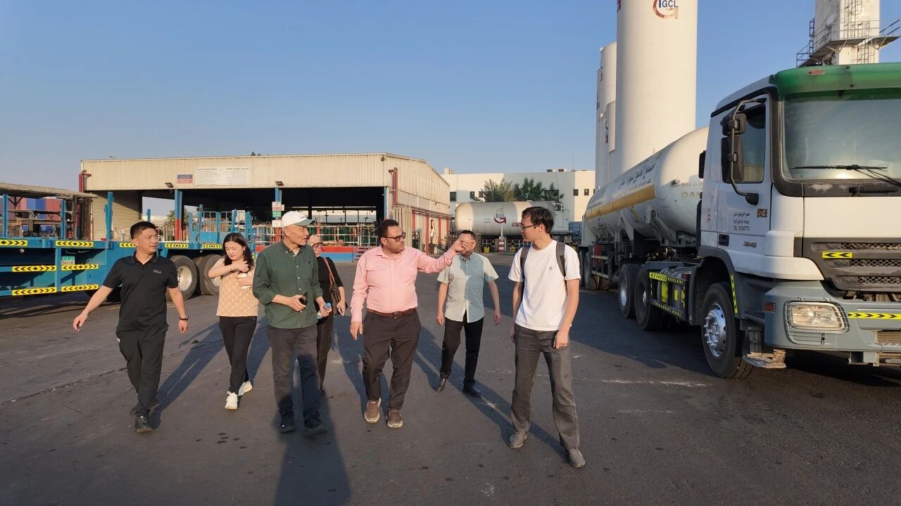 代表团首先走进位于迪拜的Gulf Cryo总部——这是一家在中东地区具有重要影响力的综合气体企业。代表团详细了解了企业在气体生产、充装、储运及应用端的布局,并就氢能、低碳发展等议题进行了深入交流。