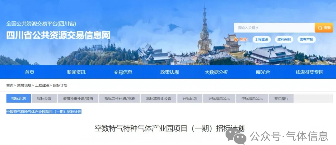 1月29日,全国公共资源交易平台(四川省)今日发布招标计划,标志着空数特气特种气体产业园项目(一期)正式进入实施阶段。该项目总投资30亿元人民币,选址巴中市巴州区曾口-金堂化工园区,是四川省2026年开年首个重大特种气体产业项目。