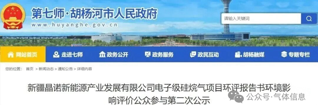 1月23日,新疆晶诺新能源产业发展有限公司电子级硅烷气项目环评第二次公示。