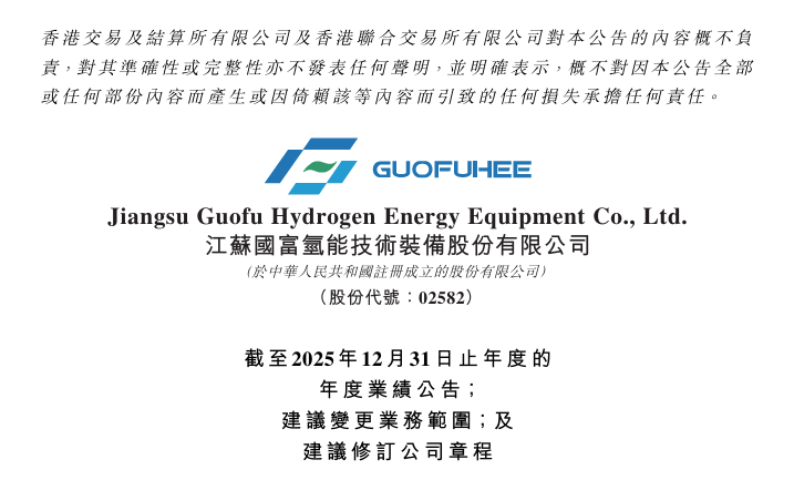 3 月 30 日,国富氢能正式公布 2025 财年全年经营业绩。报告期内,公司实现总收入约 3.464 亿元,毛利约 390 万元;受行业阶段性调整与传统业务波动影响,年内亏损较 2024 财年扩大约 83.0%,至约 3.817 亿元。尽管整体业绩承压,公司水电解制氢新兴业务实现爆发式增长,同比增幅达 213.7%,有效对冲传统业务下滑压力,多元化氢能布局战略成效逐步释放。