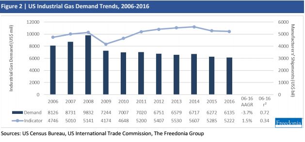 图2 | 美国工业气体需求趋势,2006-2016