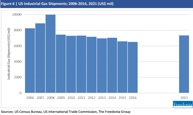 图6 | 美国工业气体出货; 2006-2016,2021(美元)